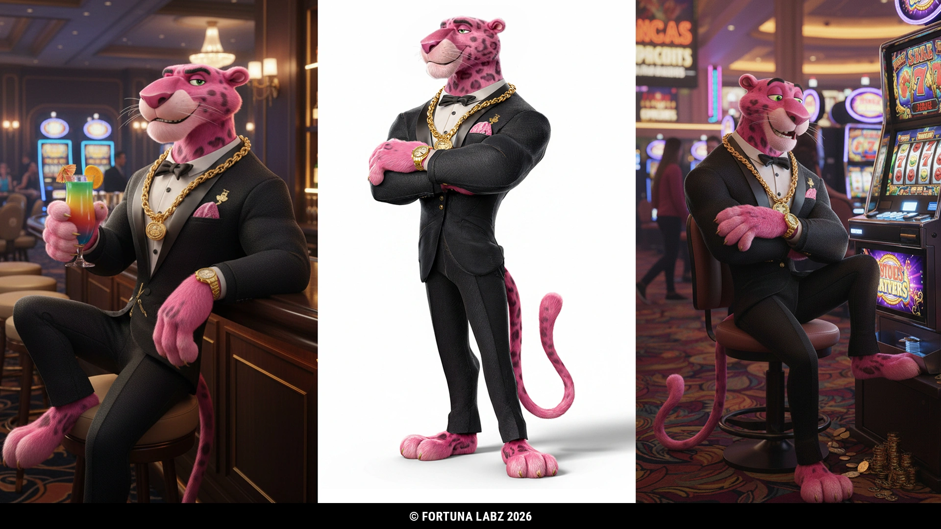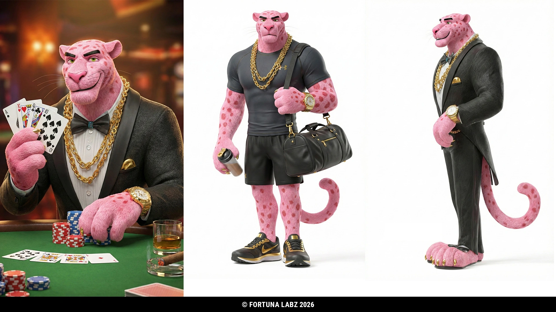 The first concept explored a sophisticated casino character, inspired by the atmosphere of Las Vegas high rollers. This version featured a refined attitude, stylish posture, and confident expressions that conveyed prestige and exclusivity.