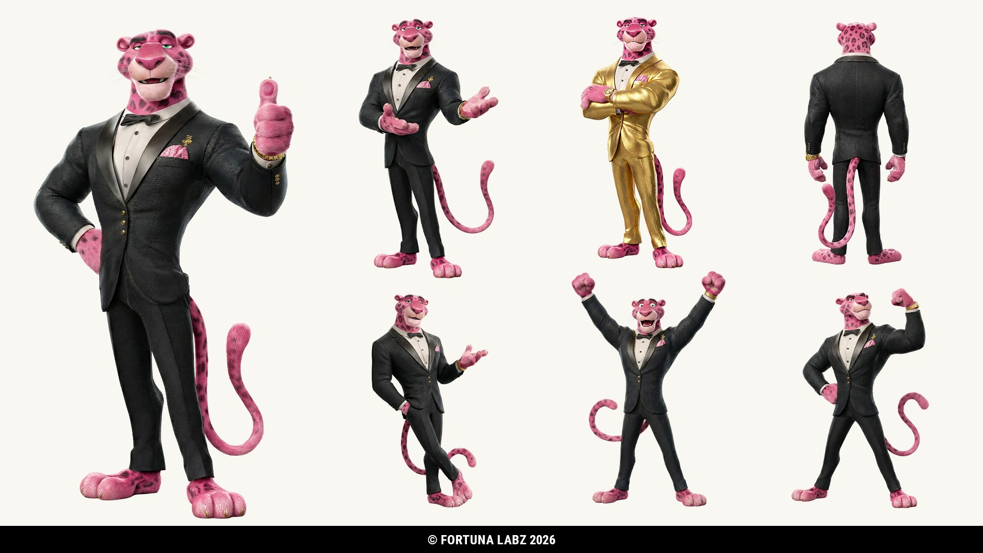 Our team produced 12 ultra-high-definition visuals (UHD) featuring the character in different situations and poses. These included: Formal Casino Look, Victory Pose, Pointing Gesture, Gym Version…